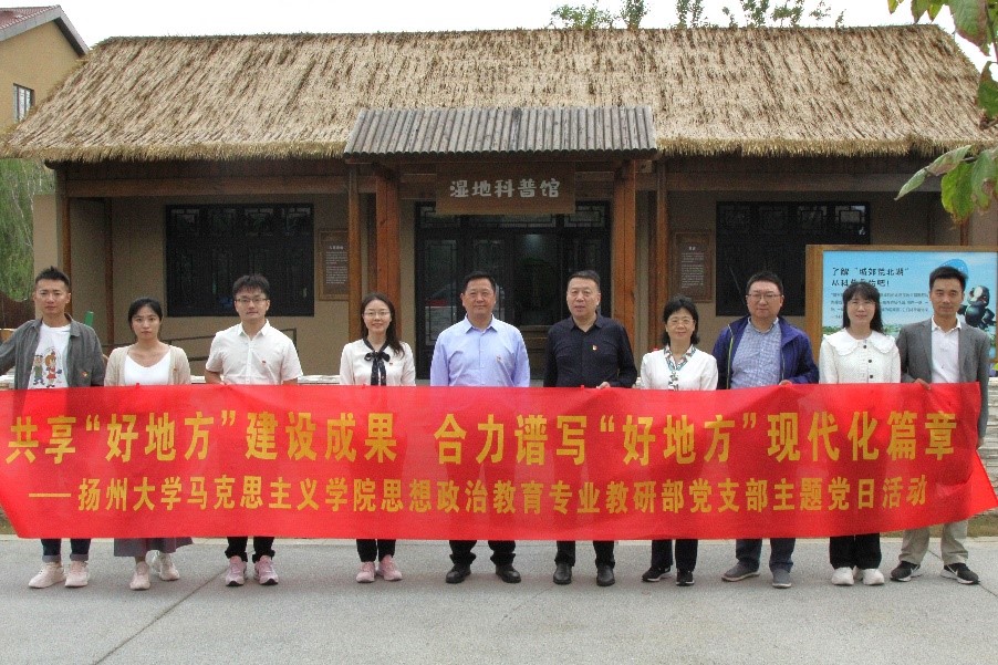 下午,学院思想政治教育专业教研部党支部和邗江区商务局党支部全体党员前往邗江北湖湿地公园进行实地考察。邗江北湖湿地公园2016年开始建设,目前建成面积达到4.7平方公里。其中,通过退渔还湖、植被重建、水系连通,新增湿地3平方公里,湿地植被覆盖率超过40%,已经吸引110余种鸟类在此繁衍生息。调研考察过程中,两支部全体党员共同学习了《习近平生态文明思想学习纲要》的主要内容,重温了“十个坚持”的习近平生态文明思想,切身感受到“生态文明建设”的美丽成果,更加深刻地领悟了“人与自然和谐共生”的基本方略和“绿色”发展的新发展理念。两支部共同号召:全体党员以实际行动践行生态文明思想,共建清洁美丽家园。