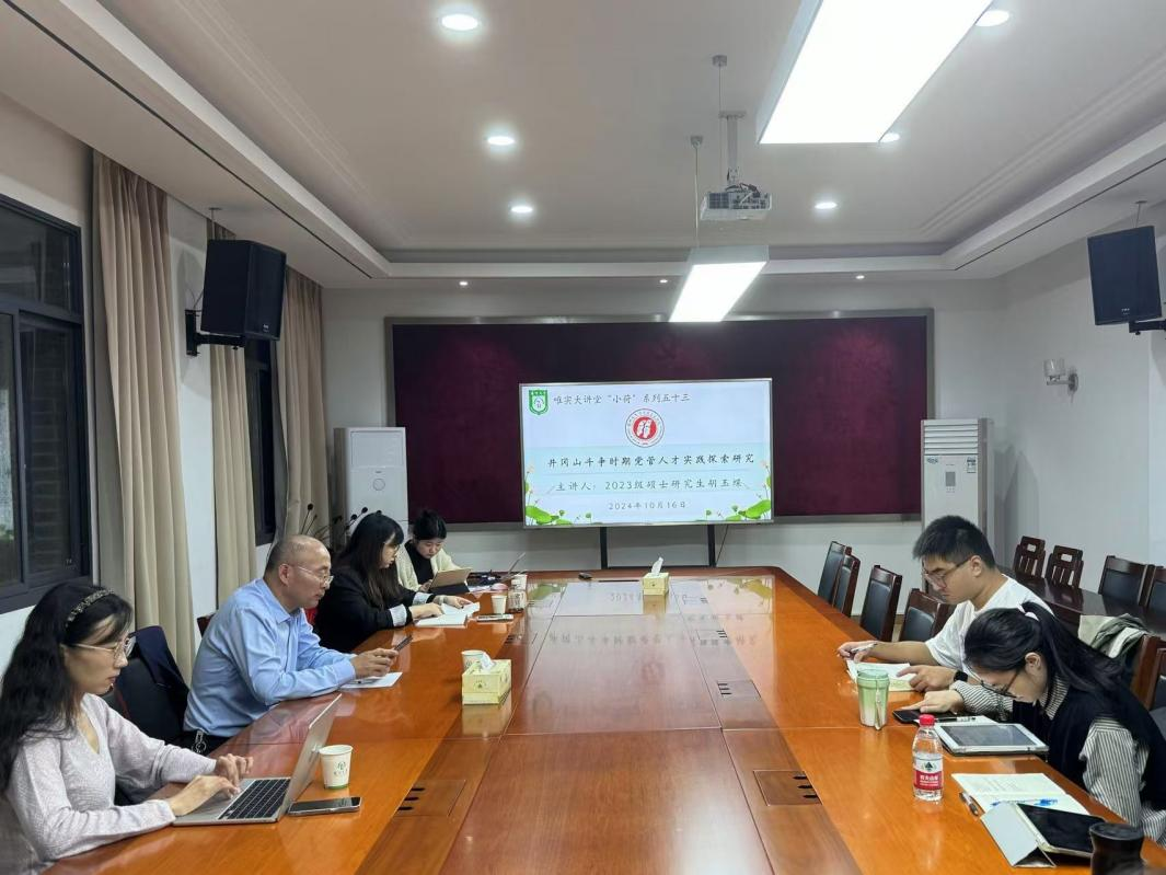 10月16日晚,中共党史党建专业于马克思主义学院201会议室隆重举办唯实大讲堂之“小荷”系列五十三期学术交流活动。本次活动由黄佳彤老师主持,徐俊教授、吴芮老师为点评嘉宾。中共党史党建专业2023级、2024级全体硕士研究生参加活动,积极交流学习。