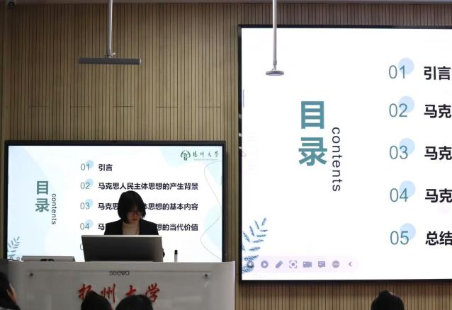 精彩回顾:顾怡悦以《德意志意识形态》文本为依据,对其中的人民主体思想的产生背景、基本内容和当代价值进行分析研究。基于社会、阶级矛盾和相关理论发展的背景,谈及马克思人民主体思想的基本内容,分为三个方面:“人民主体”的科学内涵,资本主义私有制下人民主体地位的丧失和人民主体地位的重新获得,并从理论和实践两个层面论述了马克思人民主体思想的当代价值。