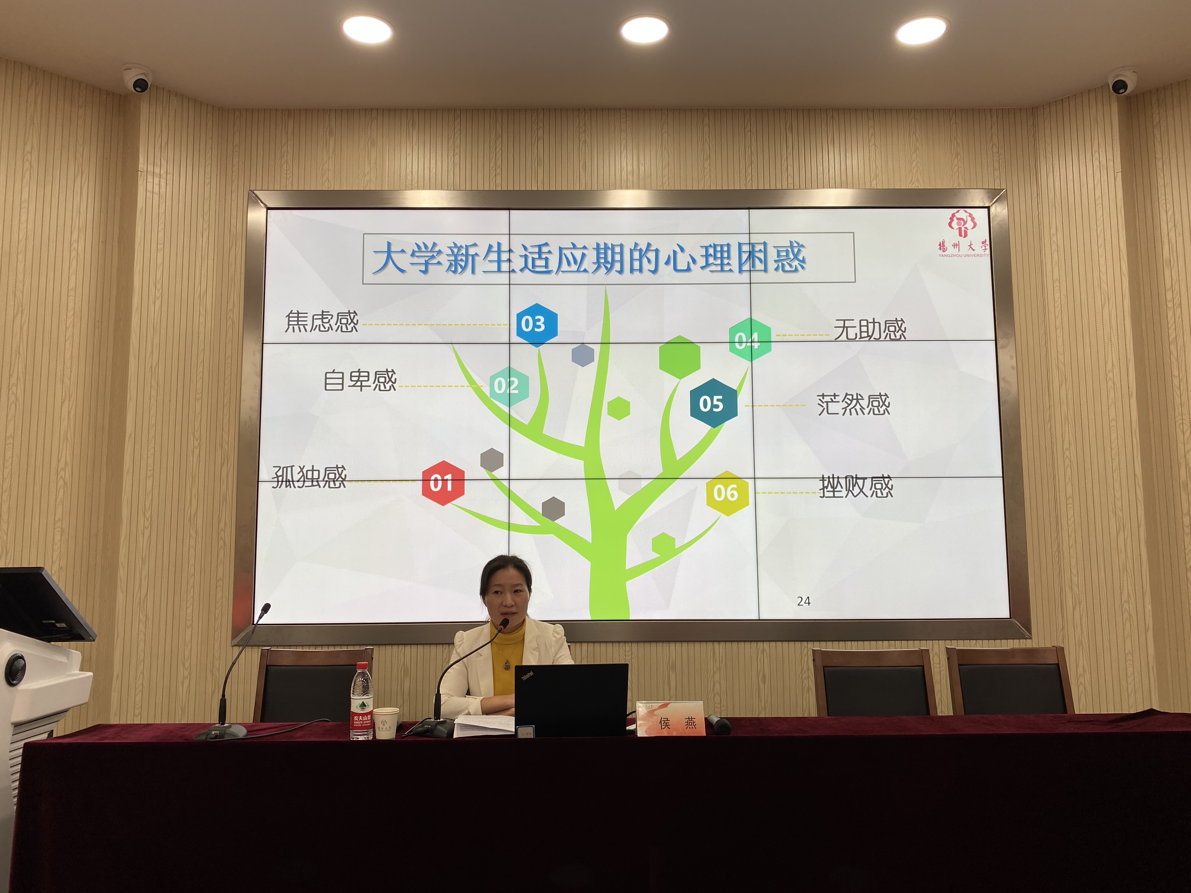 为帮助新生解决心理健康问题、尽快适应大学生活,10月6日,学院邀请扬州大学学生工作部(处)副部(处)长、校心理健康教育中心主任侯燕老师在引航厅举办了“我的大学,心路芬芳”主题讲座。活动由院团委书记杨方老师主持,全体新生参与了此次活动。