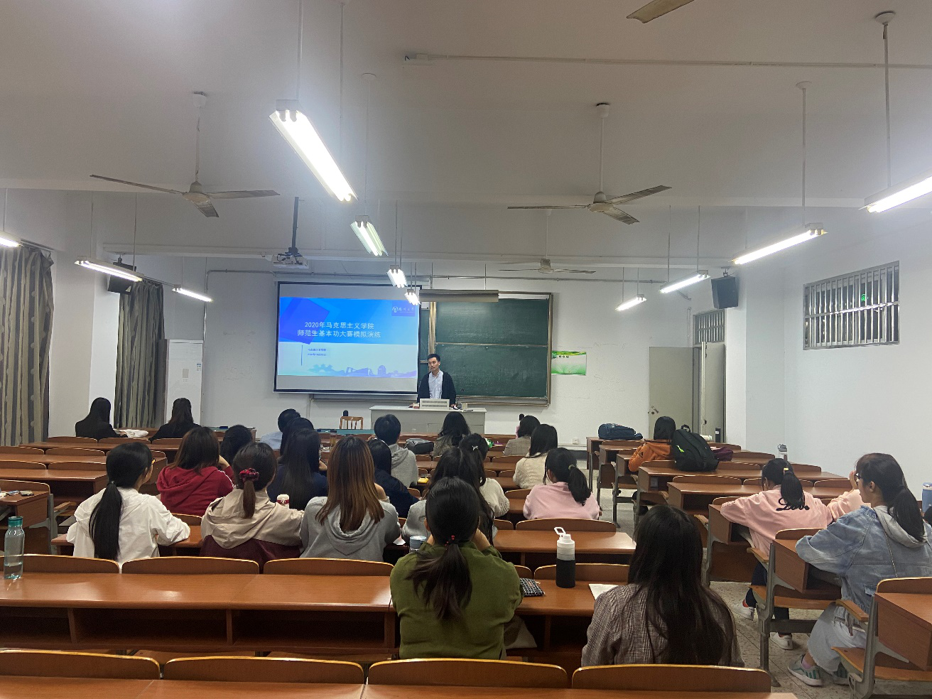政教教研部主任朱益飞介绍了出席本次模拟演练的各位专家老师,并为前来观摩的同学们介绍省师范生基本功大赛的重要性和比赛内容。
