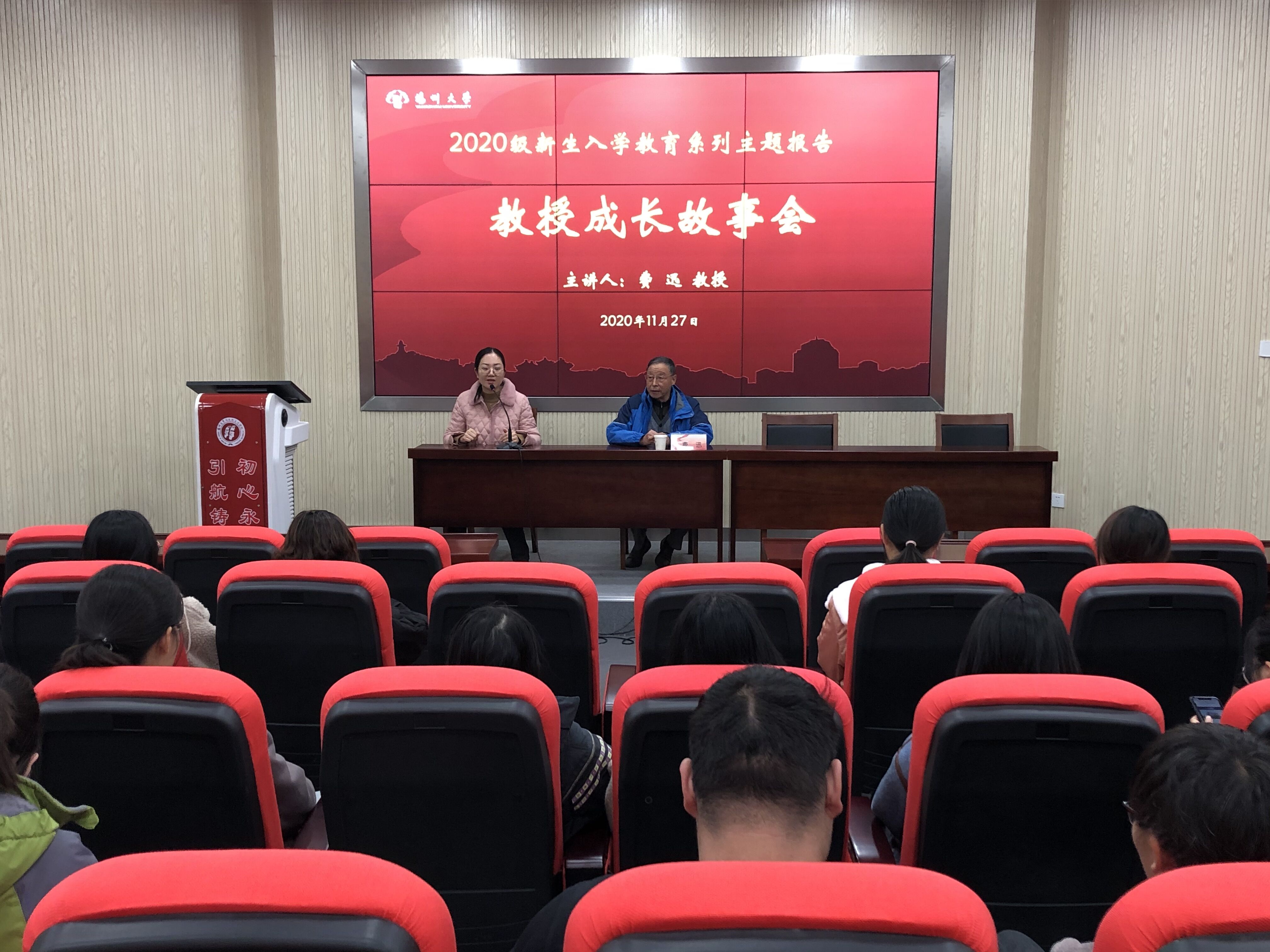 为加强对2020级新生的入学教育,11月27日上午,学院在引航厅举办了2020级新生入学教育系列主题报告——教授成长故事会。此次分享会由费迅教授、刘诚教授主讲,2020级全体新生参加报告会。