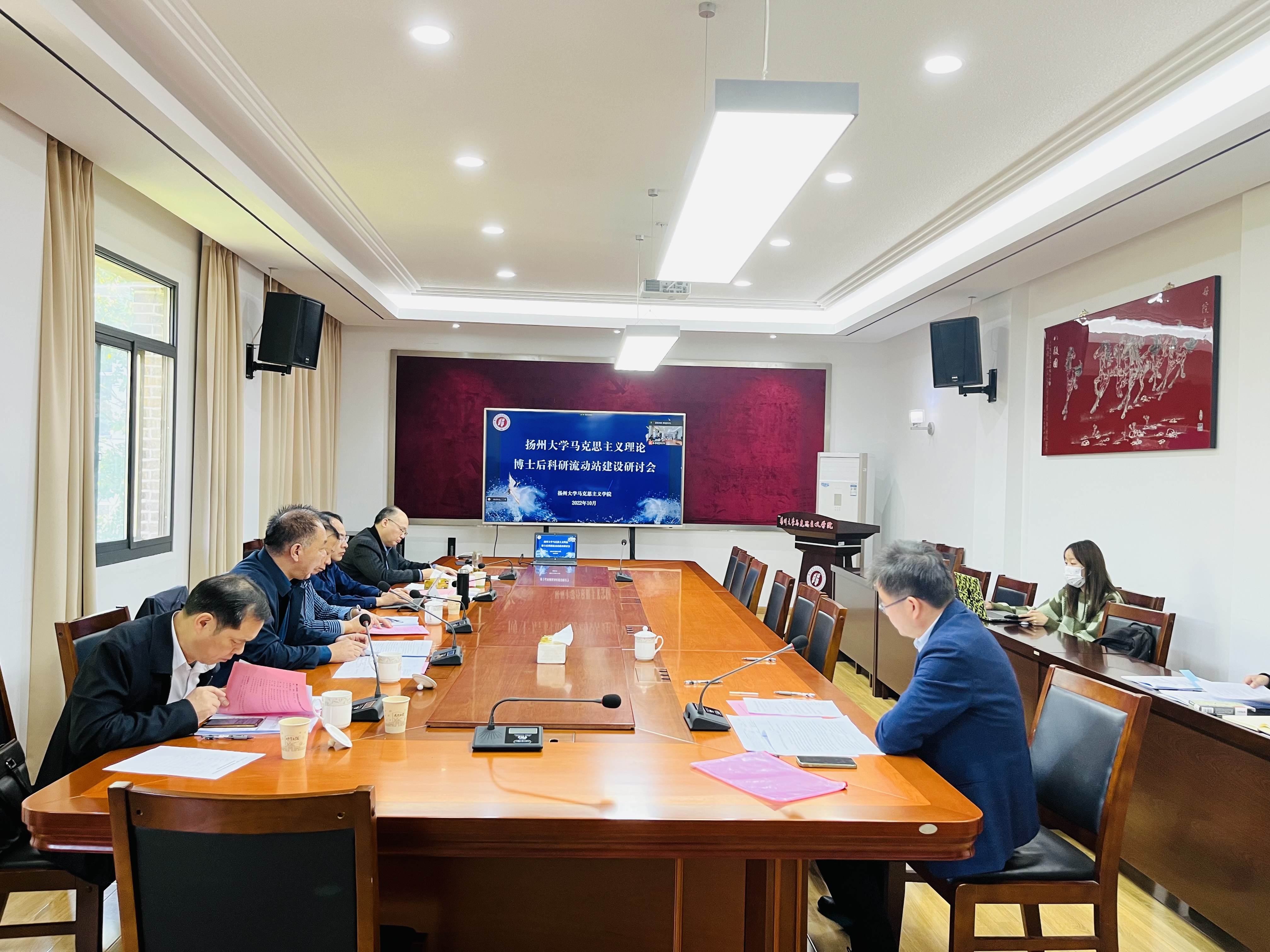 10月15日上午,马克思主义理论博士后科研流动站召开建设研讨会。苏州大学方世南教授、江苏师范大学陈延斌教授,扬州大学周建超教授、王世谊教授、吴锋教授等专家出席博士后答辩会,校人力资源处副处长汤学俊、马克思主义理论博士后科研流动站站长佘远富等出席会议并讲话,马克思主义学院院长胡立法主持研讨会。